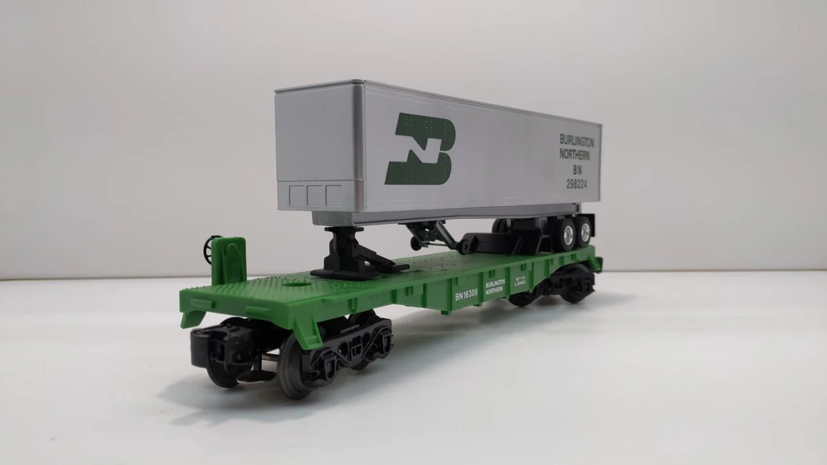 Lionel 6-16308 O Gauge Burlington Northern Flatcar #298224 w/Trailer EX/Box